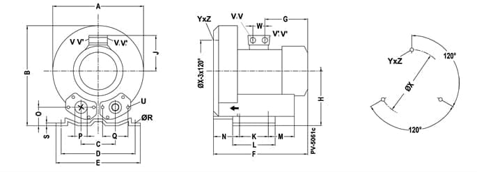 - Measuring‐surface sound‐pressure level ac. To DIN EN 21680, measured at a distance of 1 m. the pump is throttled to an average suction pressure, a hose is connected to the discharge side (compressor) / suction side (vacuum pump), but is not fitted with relief valves.