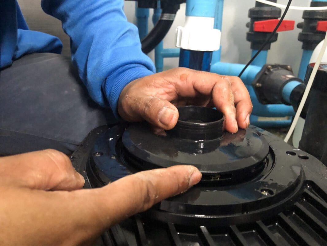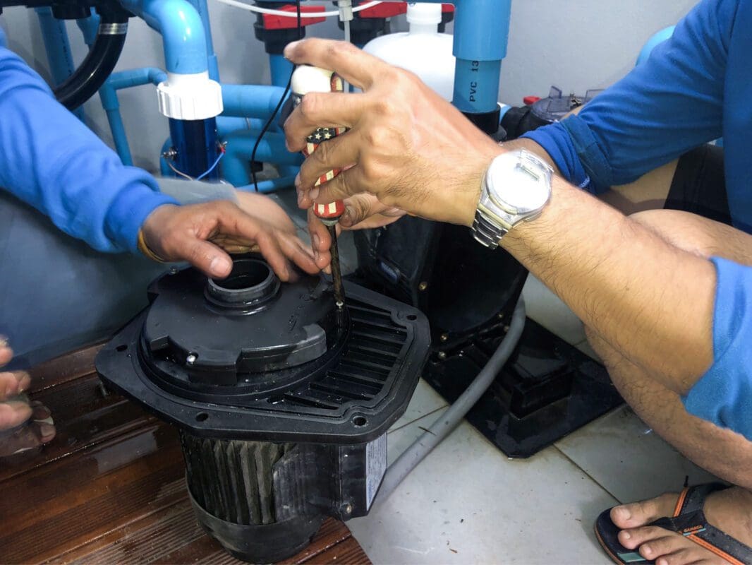 Project : ซ่อมปั๊มสระว่ายน้ำ สาเหตุ : ระบบดูดน้ำได้น้อยเนื่องจากเศษกรวดติดขัดที่ใบพัด